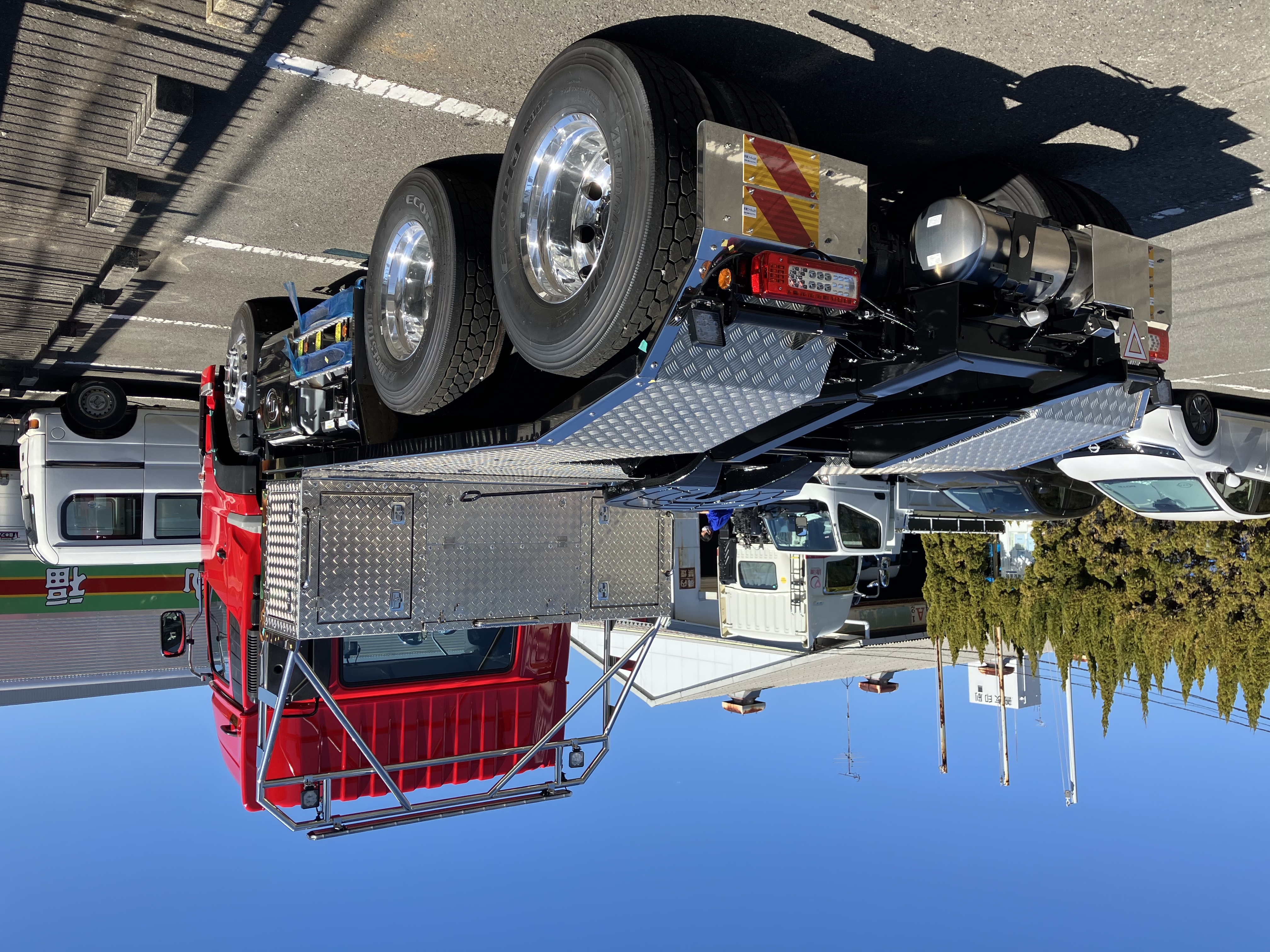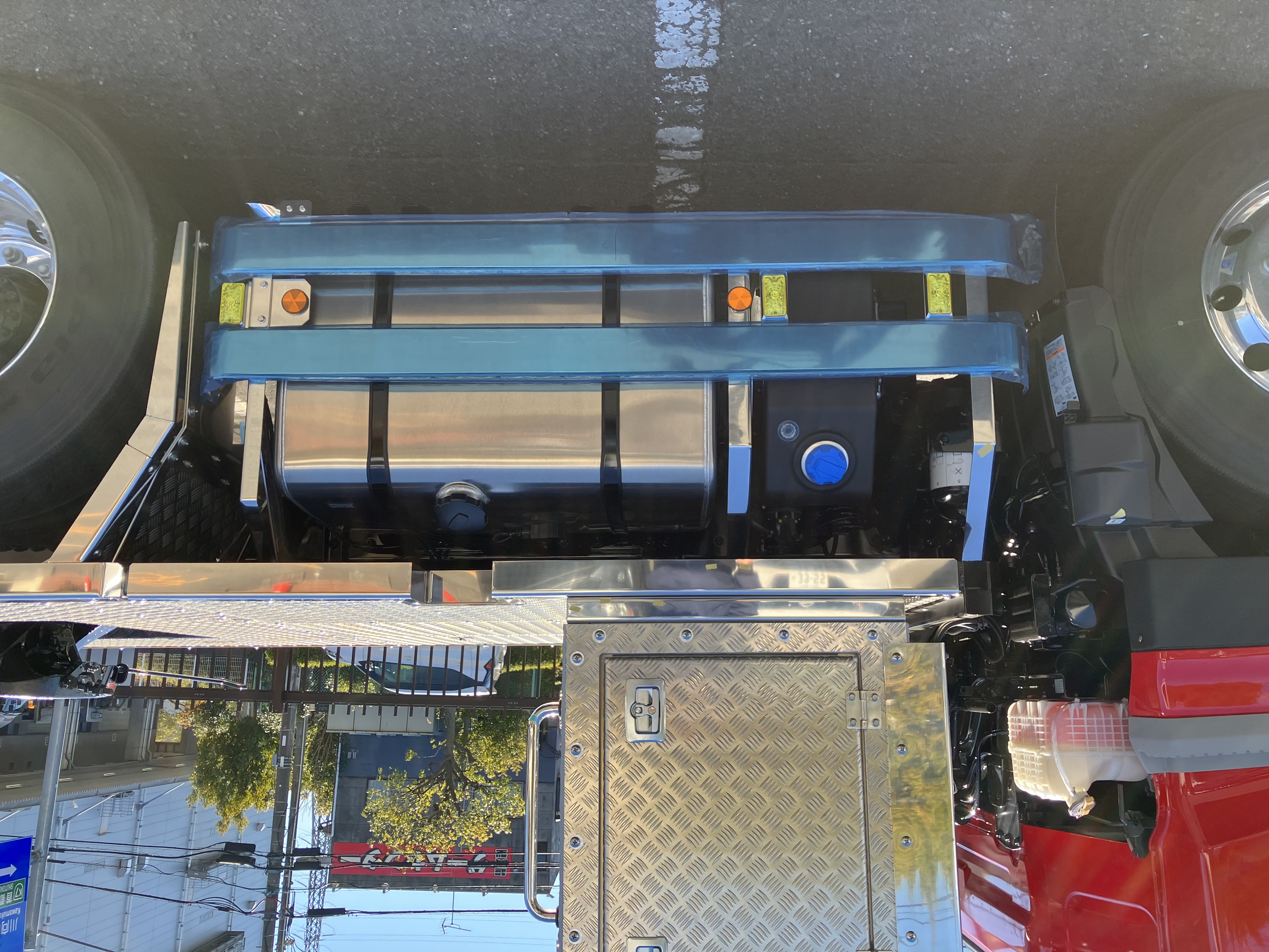 また、フェンダや全面踊場、サイドガードなどの各部にも防錆性と耐久性を考慮した施工を施し、工具箱上面には回転灯取付用のロールバー風ステンレスブラケットを設置することで、機能性とデザイン性を兼ね備えた外観を完成させました。