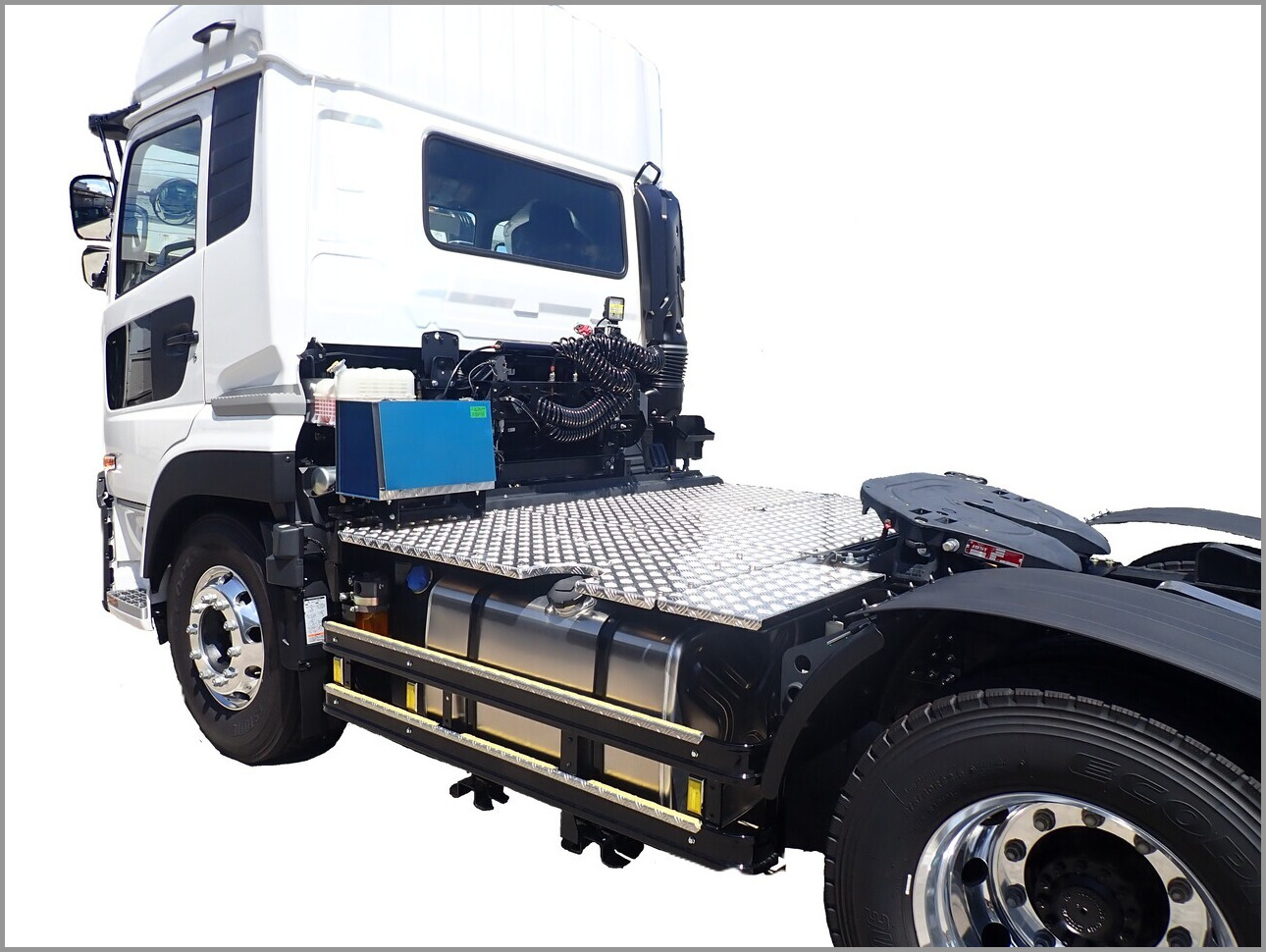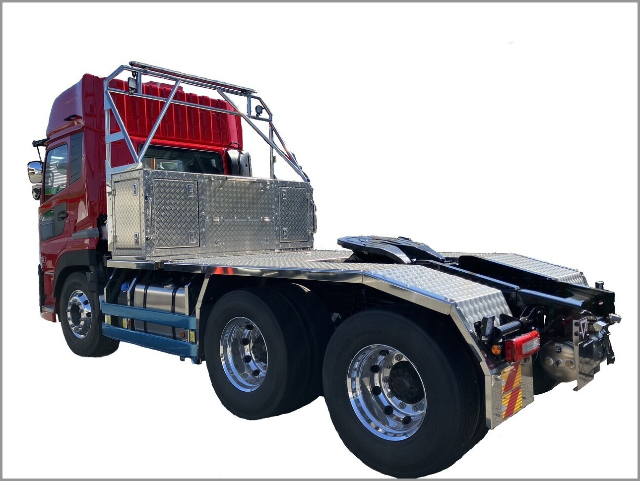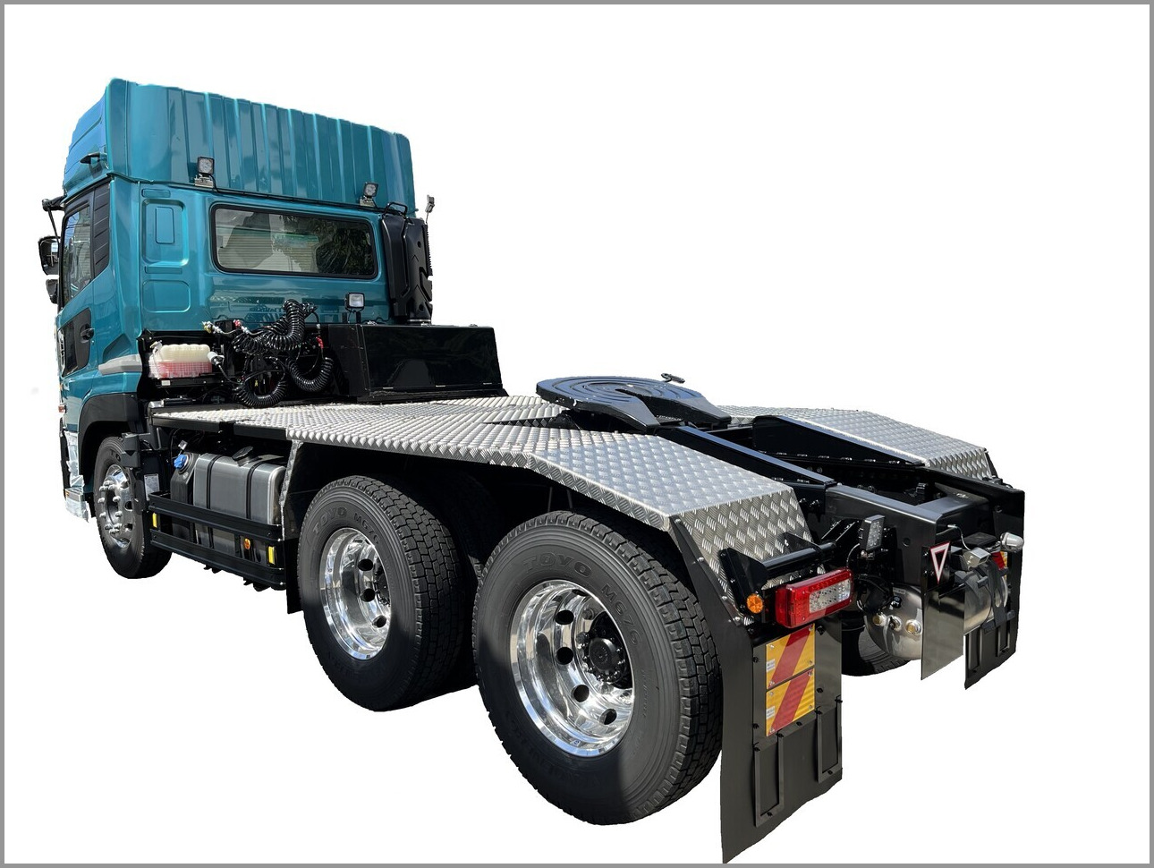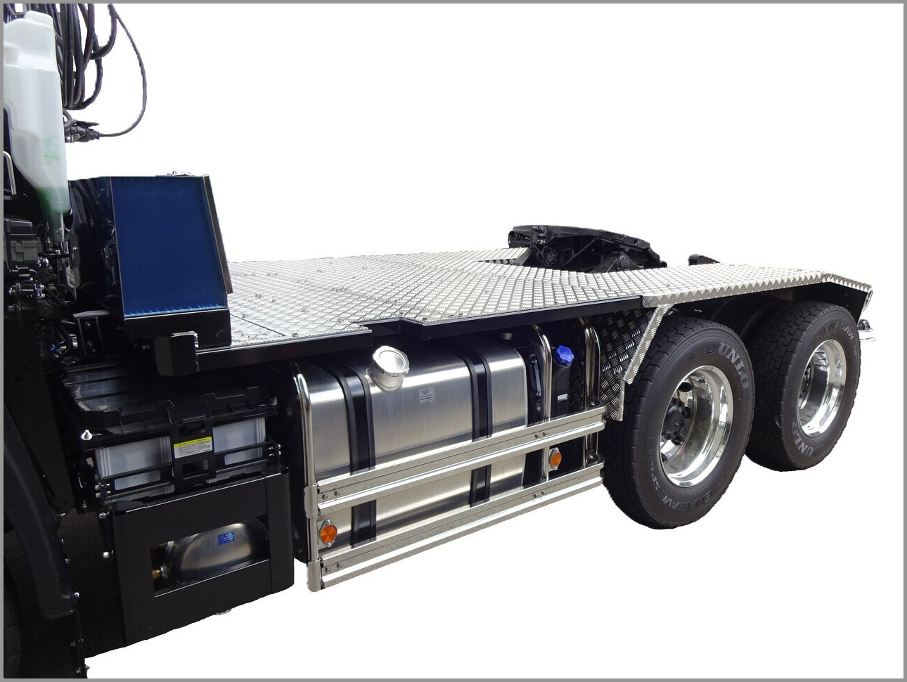 いすゞGトラクタをベースに踊場をフェンダの高さと同じ設定にし、フェンダ後部をスチール縞板に変更したパッケージング架装です。詳細は下記リーフレットよりご確認いただけます。