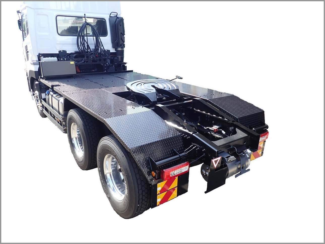 いすゞGトラクタをベースに踊場をフェンダの高さと同じ設定にし、フェンダ後部をスチール縞板に変更したパッケージング架装です。詳細は下記リーフレットよりご確認いただけます。