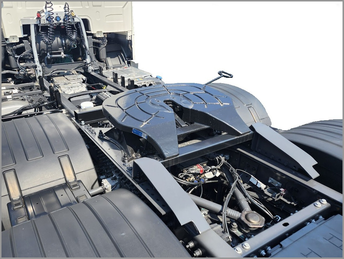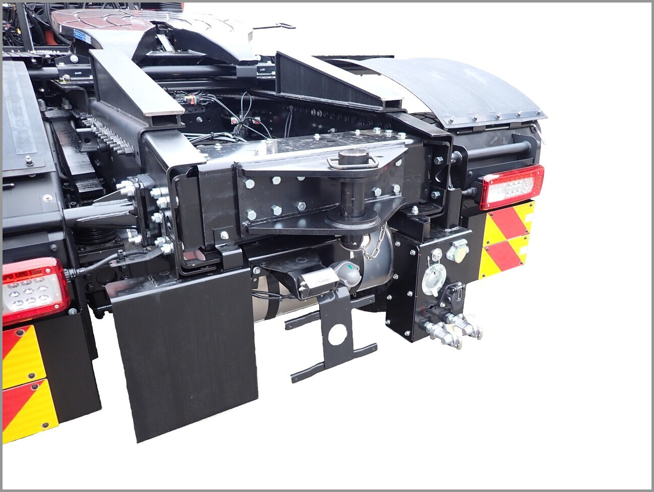 エアーチャンバ式ピントルフックも取付いたします。エアーチャンバで押し付けることにより、走行時の衝撃を吸収し、乗り心地が向上します。