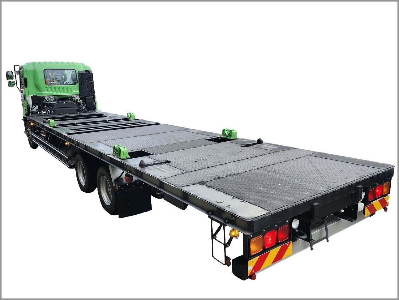 当社では、12フィートから31フィートまでの幅広いコンテナサイズに対応した専用ボデーを製作しております。お客様のニーズに合わせた柔軟な設計が可能で、特殊サイズや用途に応じたカスタマイズにも対応いたします。耐久性・安全性にも配慮した構造で、長期的な運用にも安心してご利用いただけます。詳しい仕様や対応サイズについては、画像下のリーフレットよりご確認いただけますので、ぜひご覧ください。