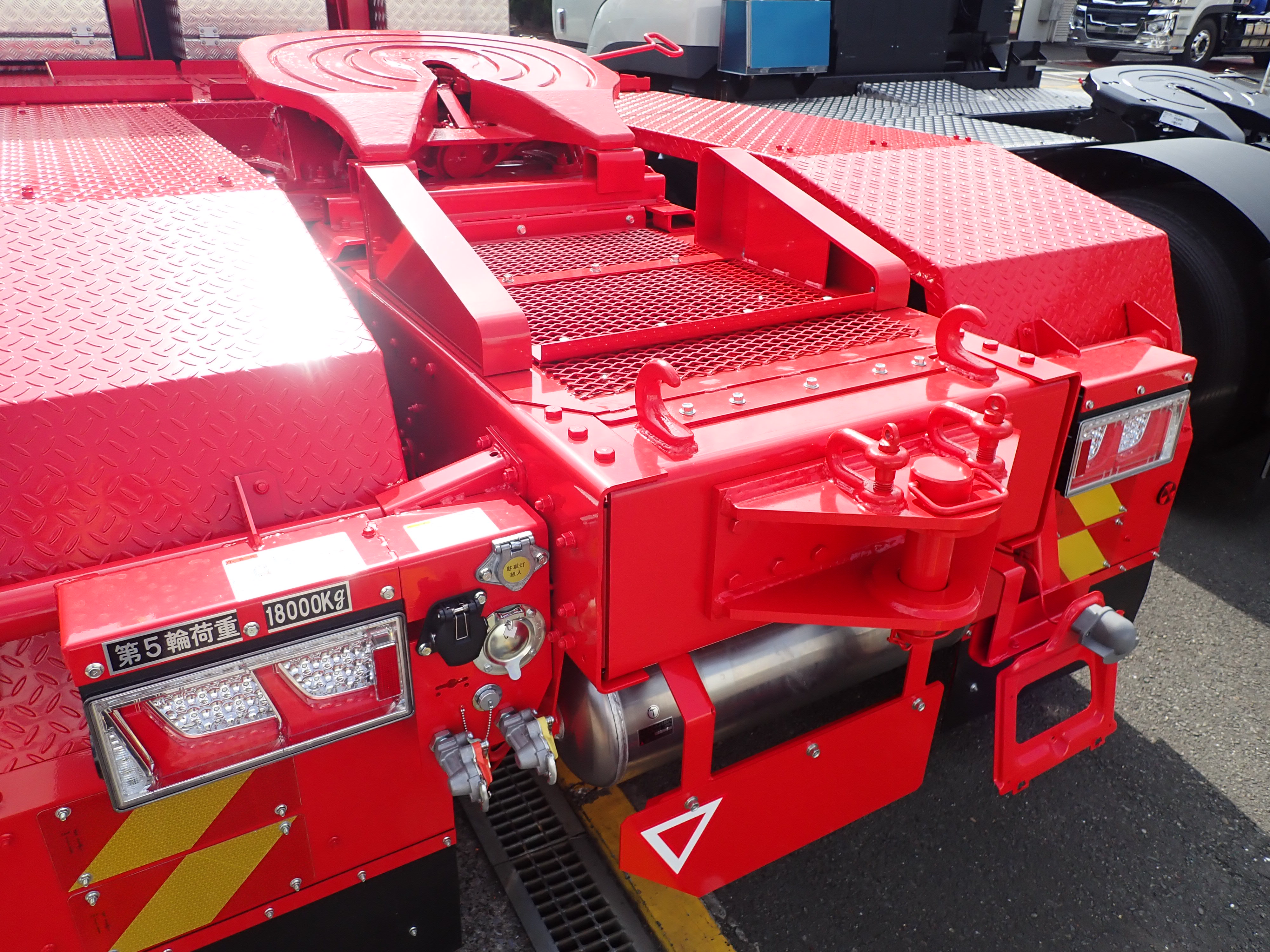 長尺物輸送のため、ポールトレーラ接続用の、落込式ピントルフックを取り付けしています。
