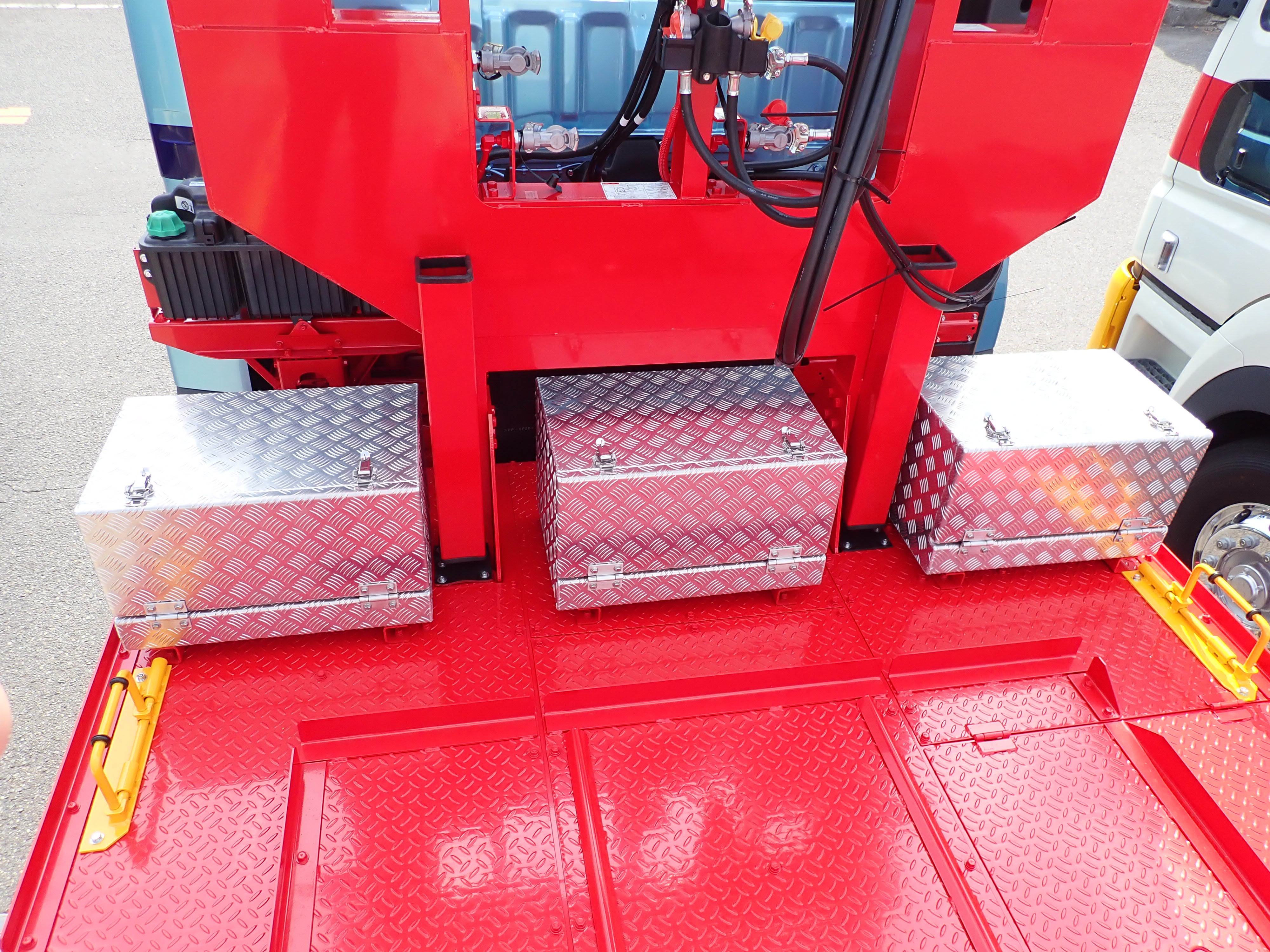 シャシおよび架装物を含めた塗装に加え、キャブはドア内側まで指定色で塗装することで、外観の統一感にも配慮しています。