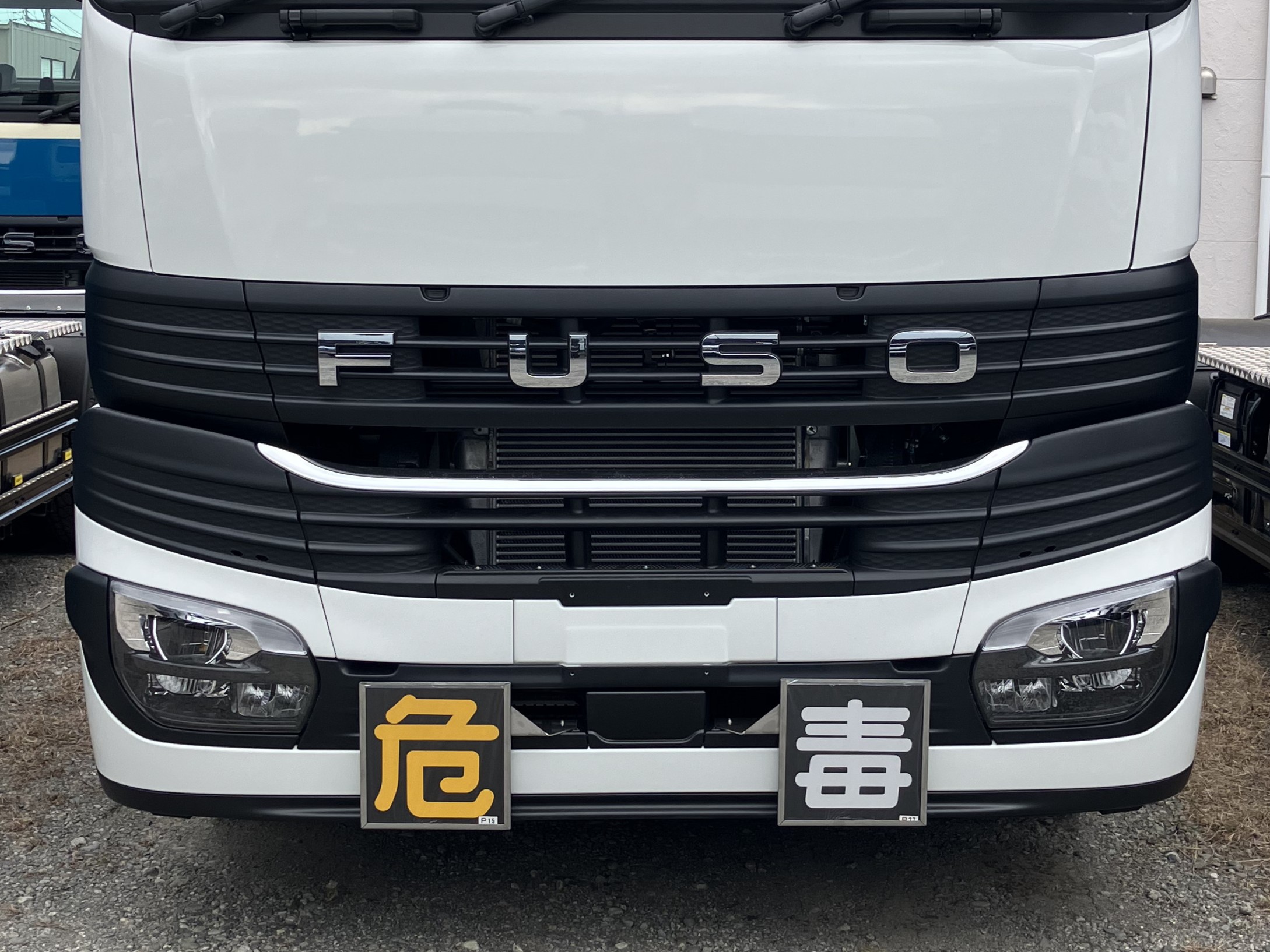 危険物輸送を想定し、キャブ正面には看板を取り付け。内容は差し替え可能なため、用途に応じた表示での使用が可能です。