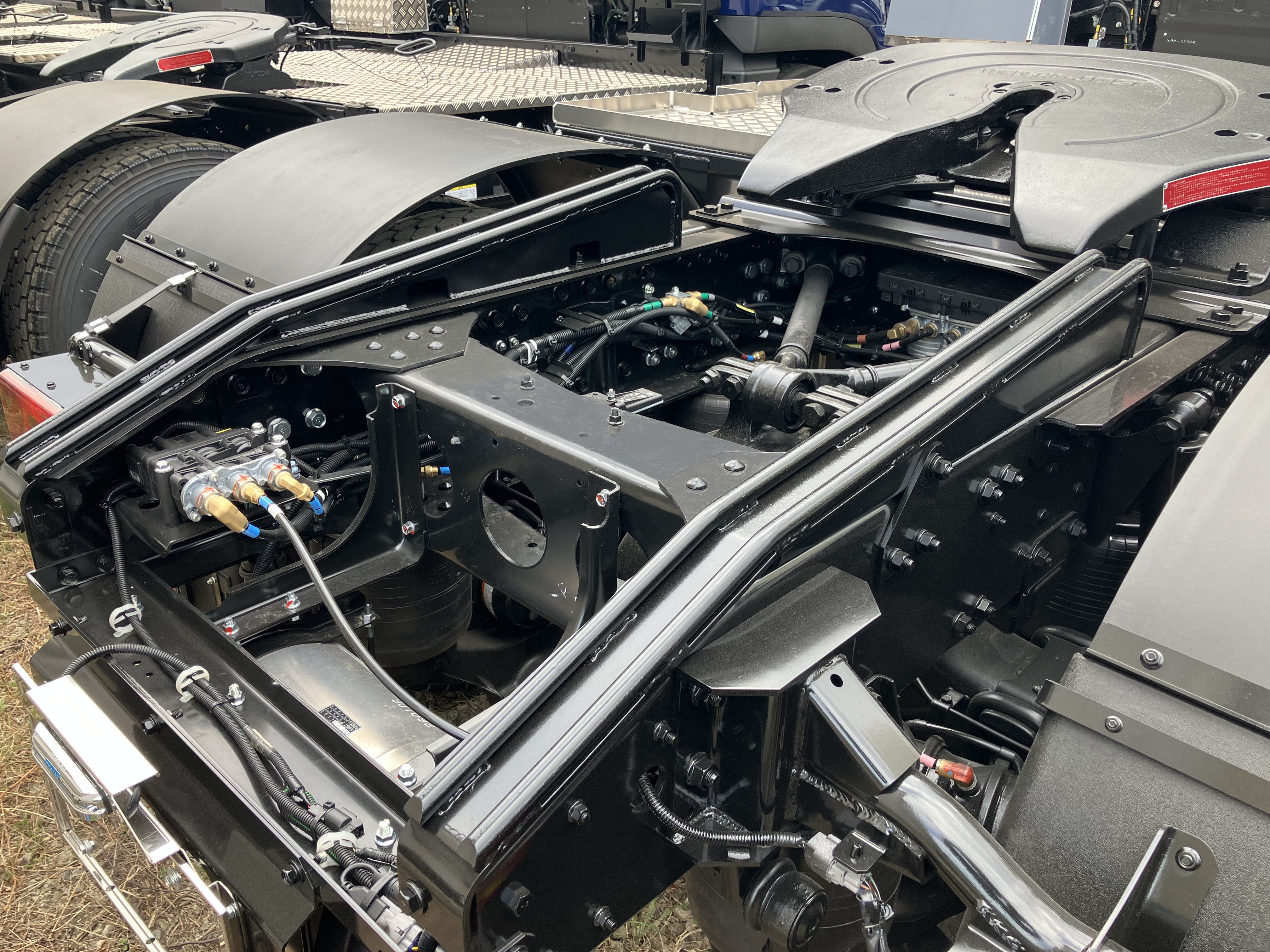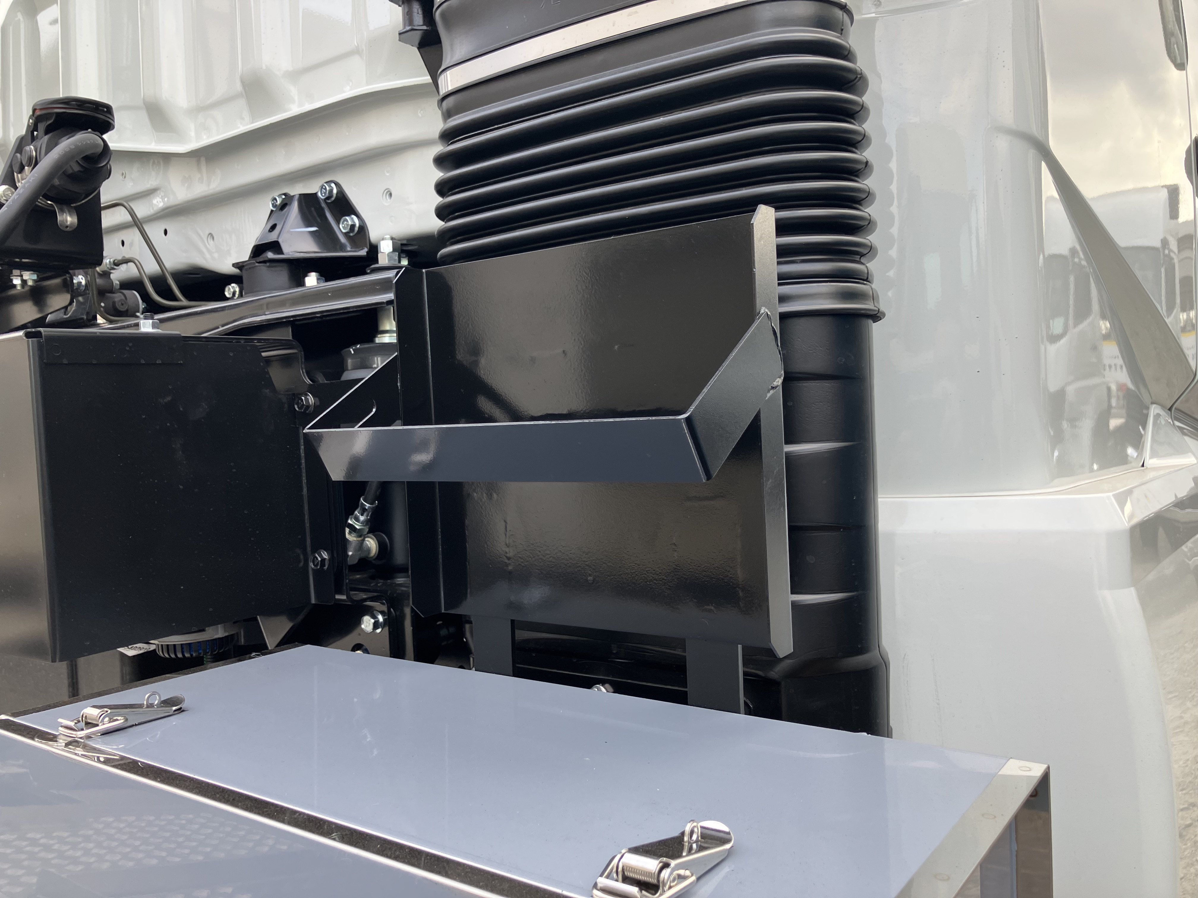 ケーブルホースを設置することで、ホース類がシャシへ接地することを防止。また、両端に工具箱を設けることで、作業時の利便性向上を図っています。